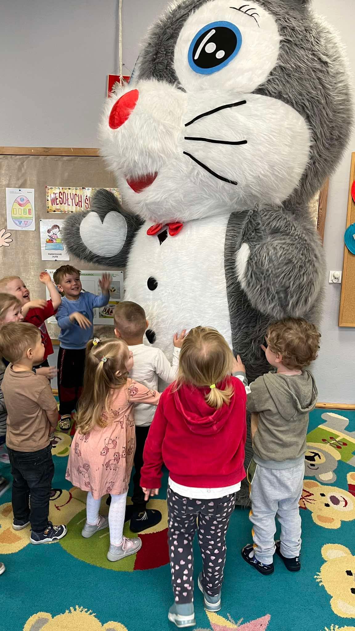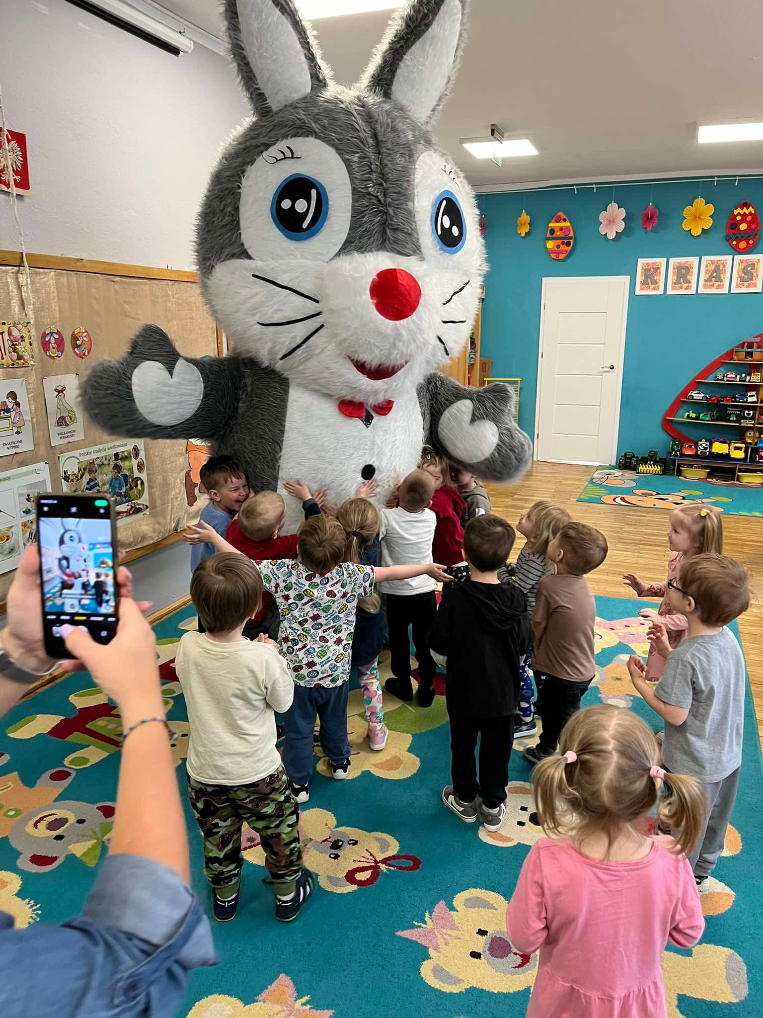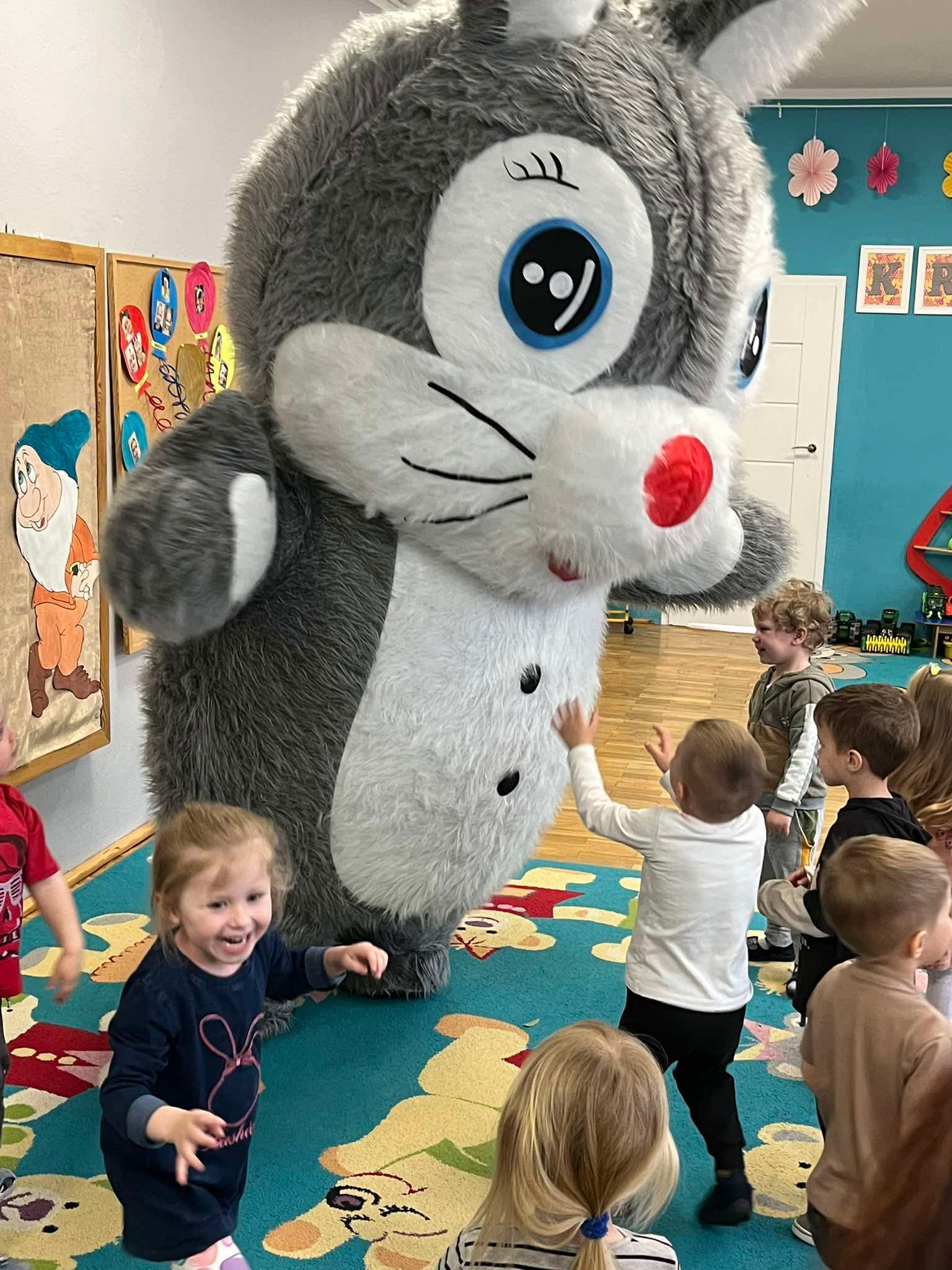 16 kwietnia Zajączek Wielkanocny przyszedł w odwiedziny do naszego przedszkola. Był największym zajączkiem jakiego do tej pory udało nam się zobaczyć, bo mierzył ponad 2 metry🐰Wspólnie z wyjątkowym gościem spędziliśmy czas tańcząc, śpiewając i ściskając się wzajemnie ♥️Zajączek obdarował nas również słodkościami, które ukryte były w przedszkolnym ogrodzie.