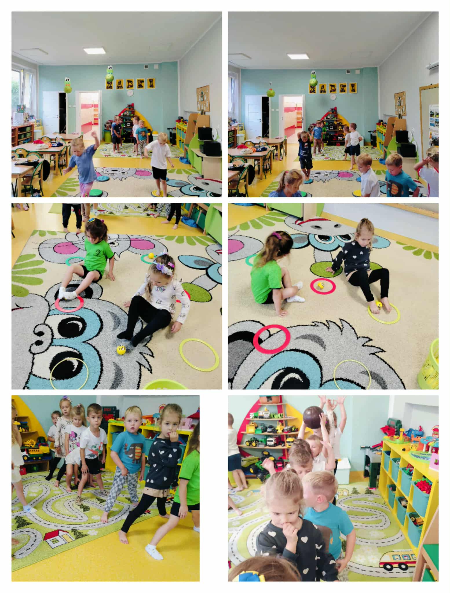 Przedszkolaki w skupieniu i z dużym zaangażowaniem oraz z niesamowitą radością wykonywały ćwiczenia.