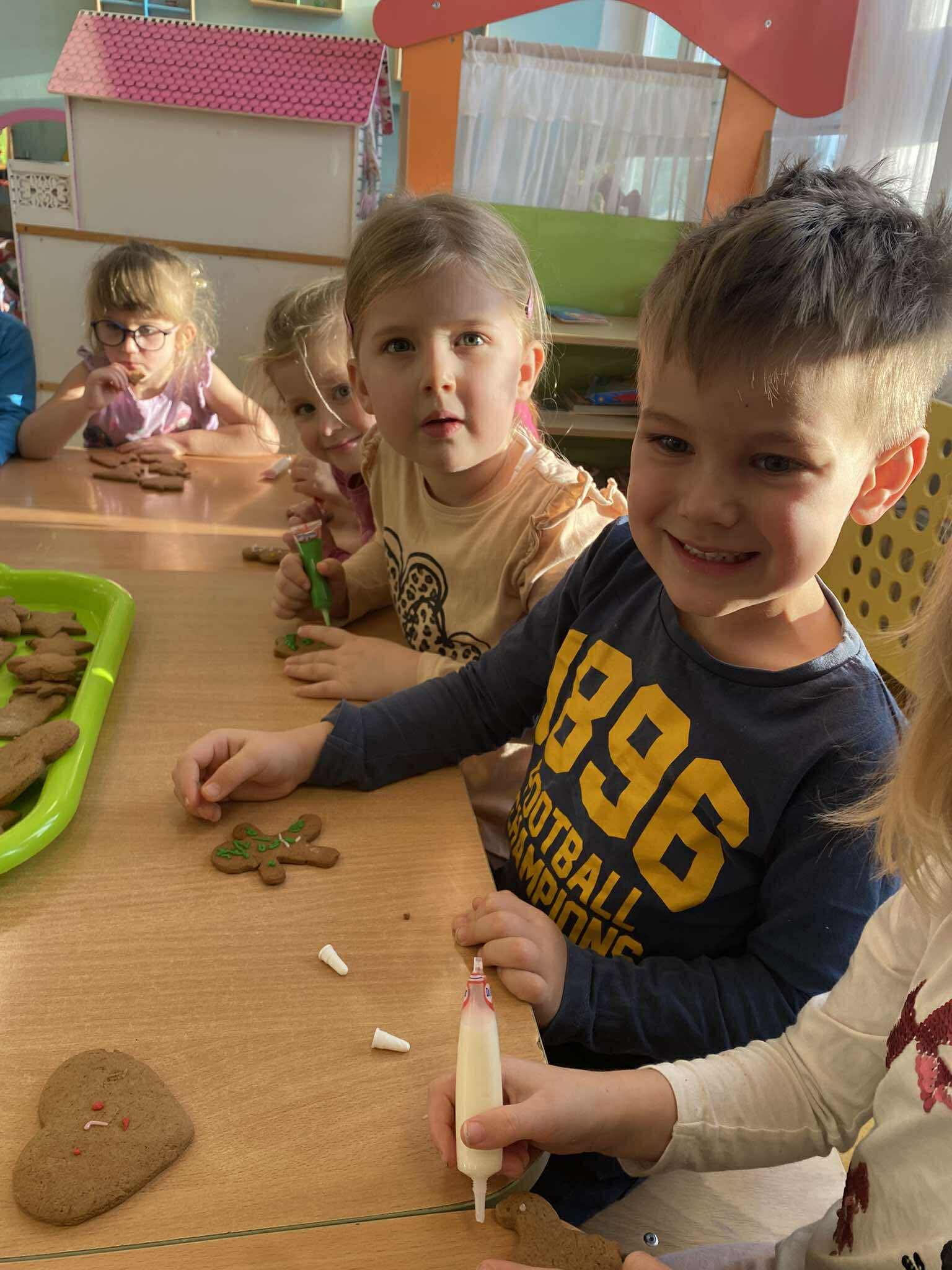 Dzieci z grupy Żabki z radością przygotowują się do Świąt Bożego Narodzenia. Napisały list do Świętego Mikołaja, upiekły pachnące pierniczki i wspólnie ubrały choinkę. Teraz wszystko jest gotowe – Święty Mikołaj może już do nas przychodzić.