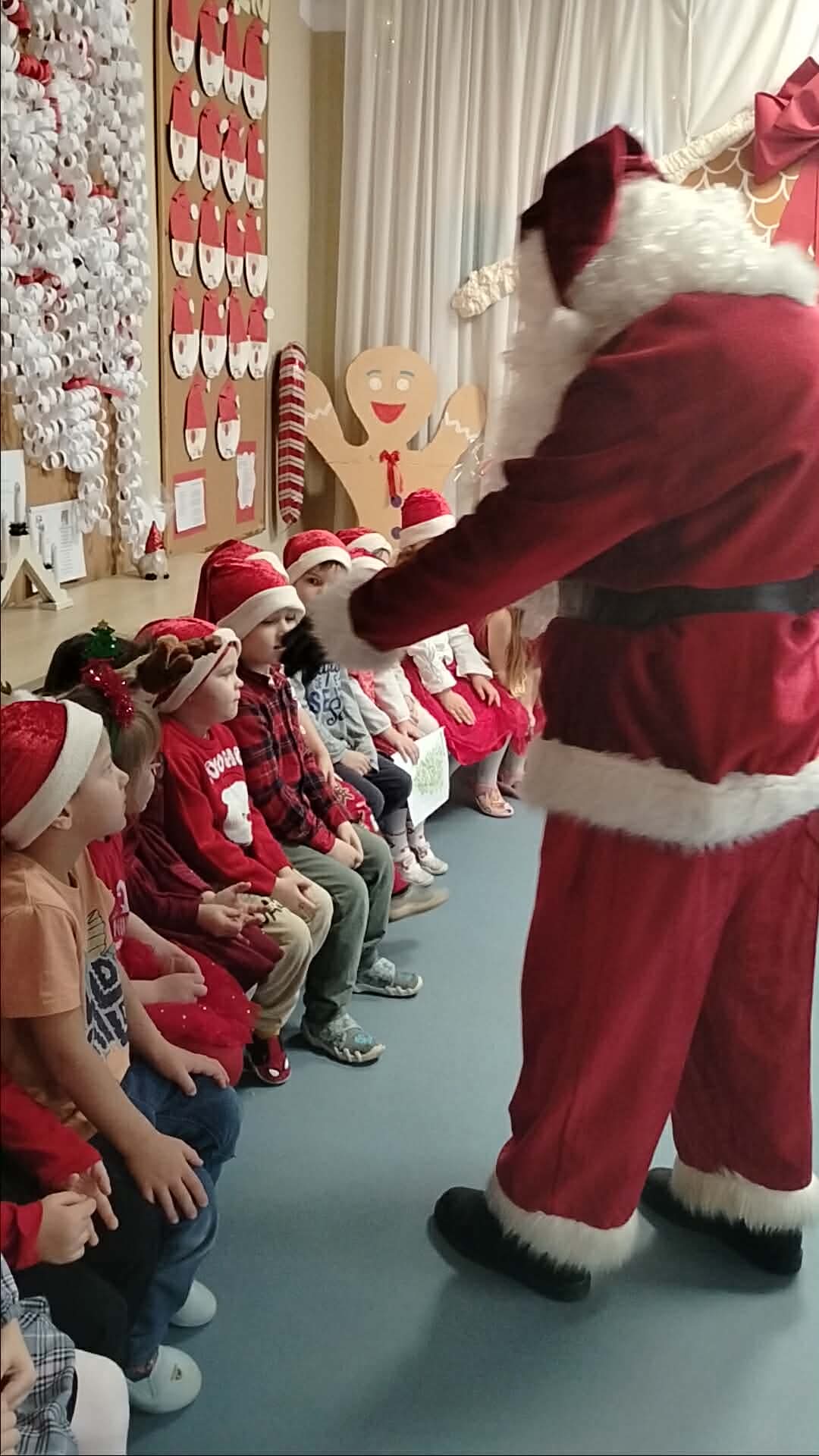 Dnia 08.12  w naszym przedszkolu gościliśmy Świętego Mikołaja. Było to niesamowite przeżycie dla Żabek! Każde dziecko otrzymało piękny prezent, a w podziękowaniu dzieci zaprezentowały wiersz oraz zaśpiewały świąteczną piosenkę. To było wyjątkowe i bardzo radosne spotkanie.