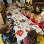 Grupa „Biedronki” uczestniczyła w uroczystej Wigilii w naszym przedszkolu. Na stołach nie zabrakło tradycyjnych dań wigilijnych przygotowanych przez nasze wspaniałe panie kucharki. Wspólnie z innymi grupami obejrzeliśmy jasełka przygotowane przez grupę Pszczółki.