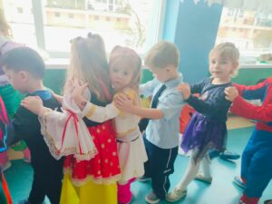 W tym miesiącu w naszym przedszkolu odbył się radosny bal karnawałowy, który dostarczył dzieciom mnóstwo uśmiechu i niezapomnianych wrażeń. Wspaniałą zabawę poprowadził pan wodzirej, zapraszając wszystkich do tańców i udziału w licznych konkursach. Dzieci zachwyciły kreatywnymi strojami – było bardzo barwnie i różnorodnie. To był dzień pełen muzyki, śmiechu i fantastycznej zabawy.