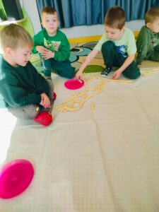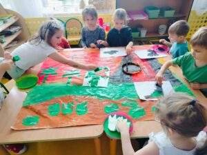 Przez cały ostatni tydzień lutego dzieci z grupy „Żabki” z ogromnym zainteresowaniem rozmawiały o dinozaurach, ponieważ 26 lutego obchodziliśmy Dzień Dinozaura – to wyjątkowa okazja, by poszerzać wiedzę o tych fascynujących prehistorycznych stworzeniach. W ramach zajęć mali odkrywcy uczestniczyli w licznych zabawach i grach o tematyce dinozaurów,  tworzyli szkielet dinozaura z chrupkich kukurydzianych elementów oraz odbijali odciski dinozaurów w masie solnej. Dzieci z wielkim zaciekawieniem obserwowały również „wybuchający wulkan” z produktów spożywczych, co dostarczyło im mnóstwo radości i nauki przez zabawę. To był tydzień pełen kreatywnych pomysłów, ciekawostek oraz wspólnej zabawy w świecie prehistorycznych gadów!