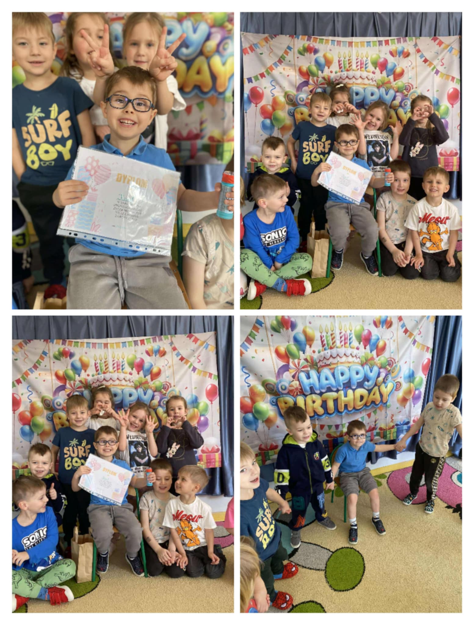 W marcu w naszej grupie świętowaliśmy urodzinki Helenki i Kuby. Z tej okazji zaśpiewaliśmy wspólnie tradycyjne „Sto lat”, złożyliśmy życzenia i wspólnie spędziliśmy radosne chwile podczas zabaw w sali. Moc życzeń i przytulasów sprawiła dzieciom wiele radości i uśmiechu.