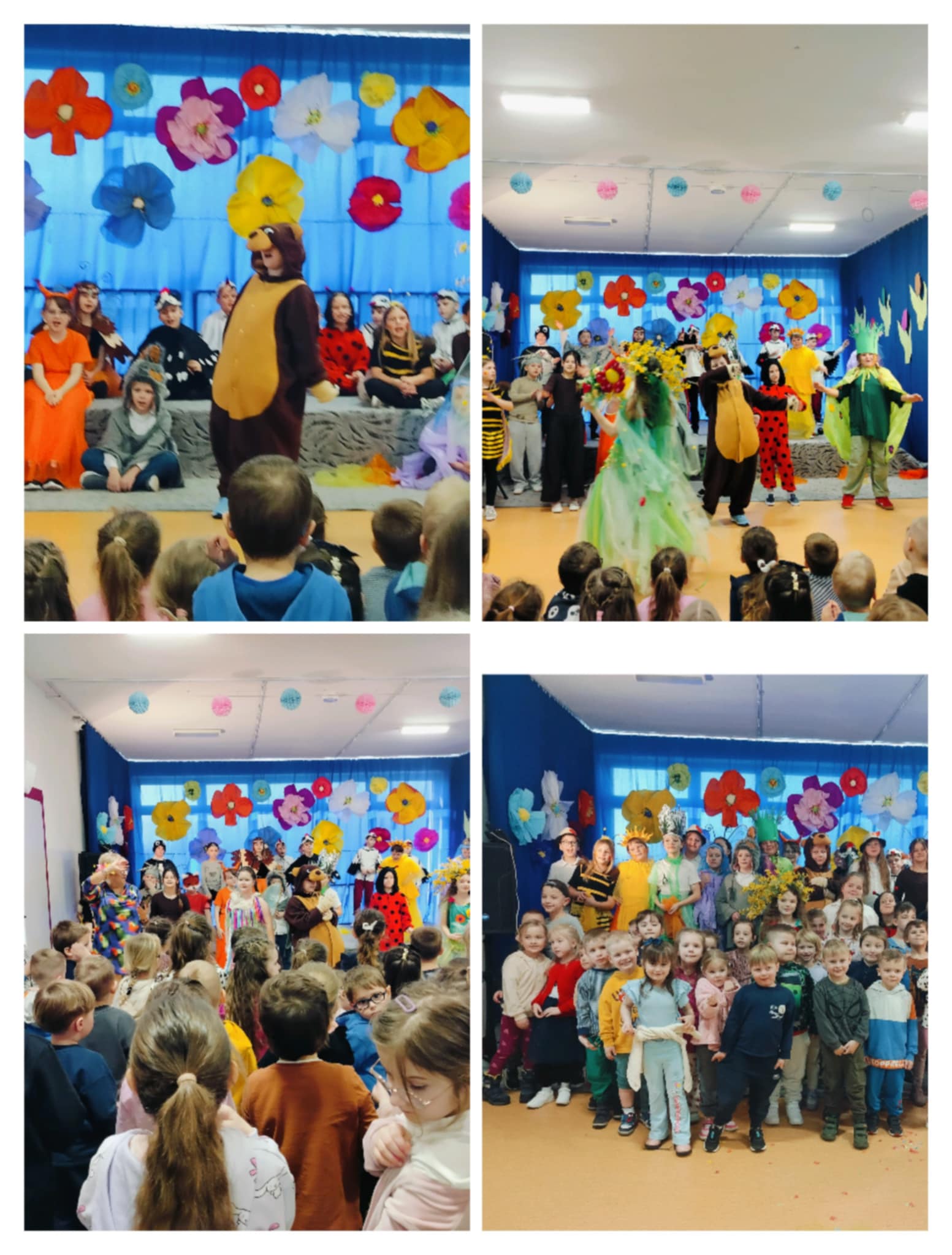 W miniony czwartek nasze przedszkolaki, odwiedziły swoich starszych kolegów w szkole. Uczniowie klas trzecich zaprezentowały wyjątkowy spektakl pt. ” O misiu, który się obudził z zimowego snu”, wprowadzając zgromadzonych gości w radosny, wiosenny nastrój. Piękne stroje, aranżacja sceny oraz wspaniała gra aktorska wzbudziły zachwyt wśród najmłodszych widzów.