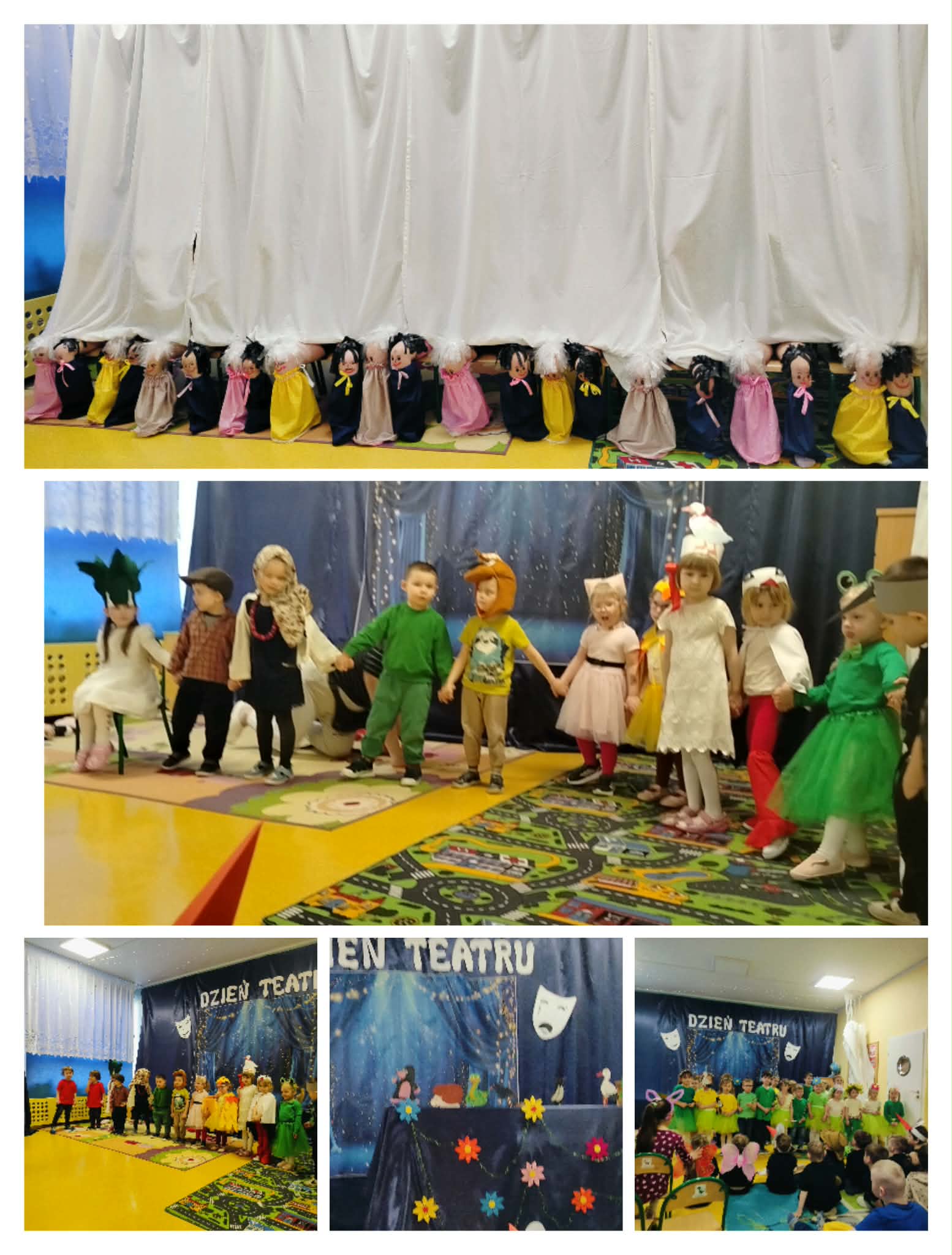 Dzieci z każdej grupy zaprezentowały krótkie inscenizacje teatralne, wcielając się w różnorodne postacie i pokazując swoje talenty aktorskie. Ten dzień był wyjątkowy, pełen radości , kreatywności, a kolorowe stroje wprowadziły widzów w wiosenny nastrój. W tym dniu panowała niesamowita atmosfera, dzieci ze skupieniem i radością oglądały występy swoich kolegów:)