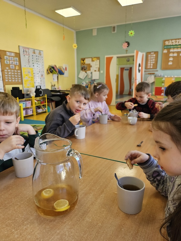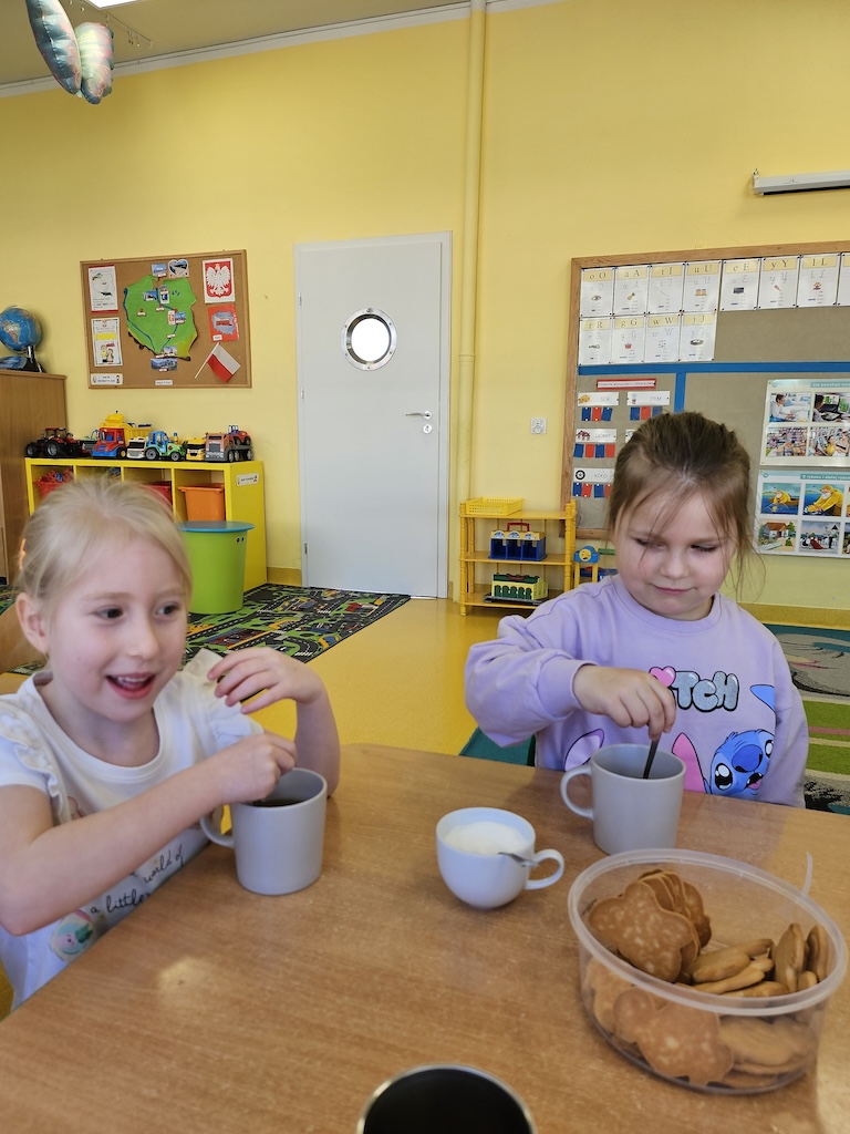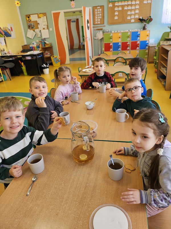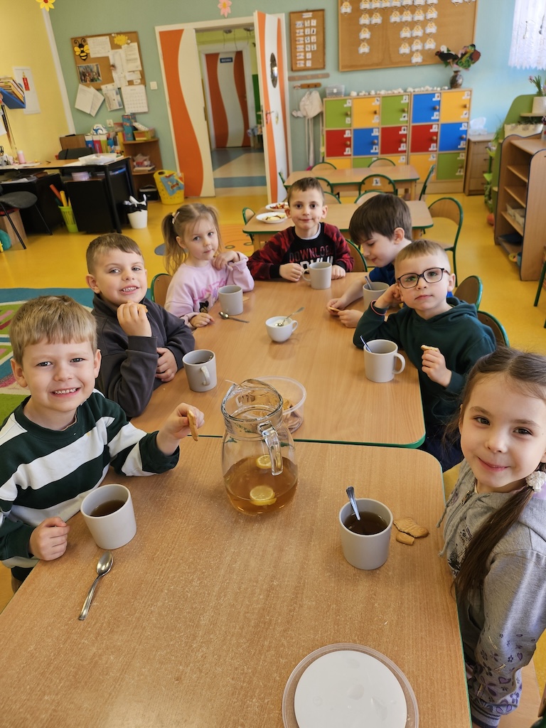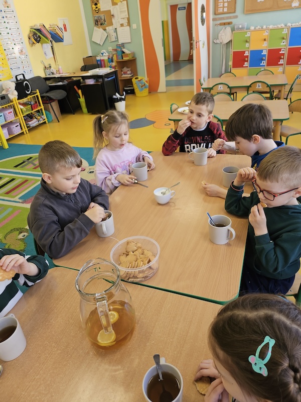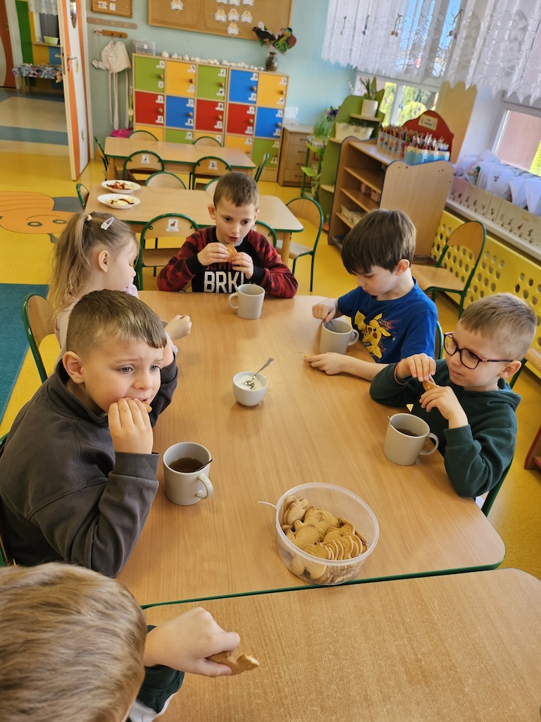 Wróciliśmy po Świętach Wielkanocnych w niezbyt dobrych humorach. Wspólna herbatka i herbatniczek poprawiły wszystkim nastroje.